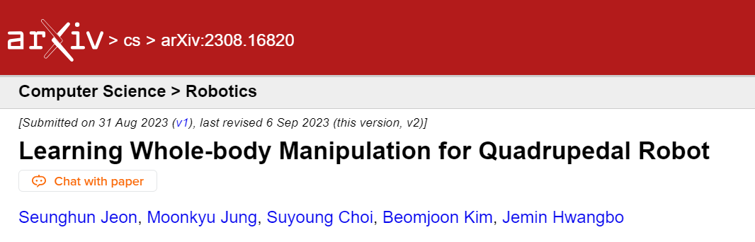 最近,该研究以“Learning Whole-body Manipulation for Quadrupedal Robot”为题被发布在arXiv平台上: