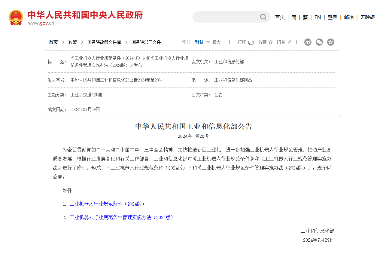 参与修订《工业机器人行业规范条件(2024版)》,支撑工信部加强机器人行业规范管理。