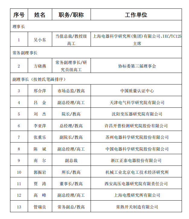 新任理事长吴小东在大会上提出新一届理事会工作设想“以高质量标准化工作助力创建世界一流电气行业组织”,包括建立健全面向产业转型升级的标准体系、提高标准体系的系统性和协调性、持续提高参与国际标准化活动水平、提升团体标准质量和应用成效。